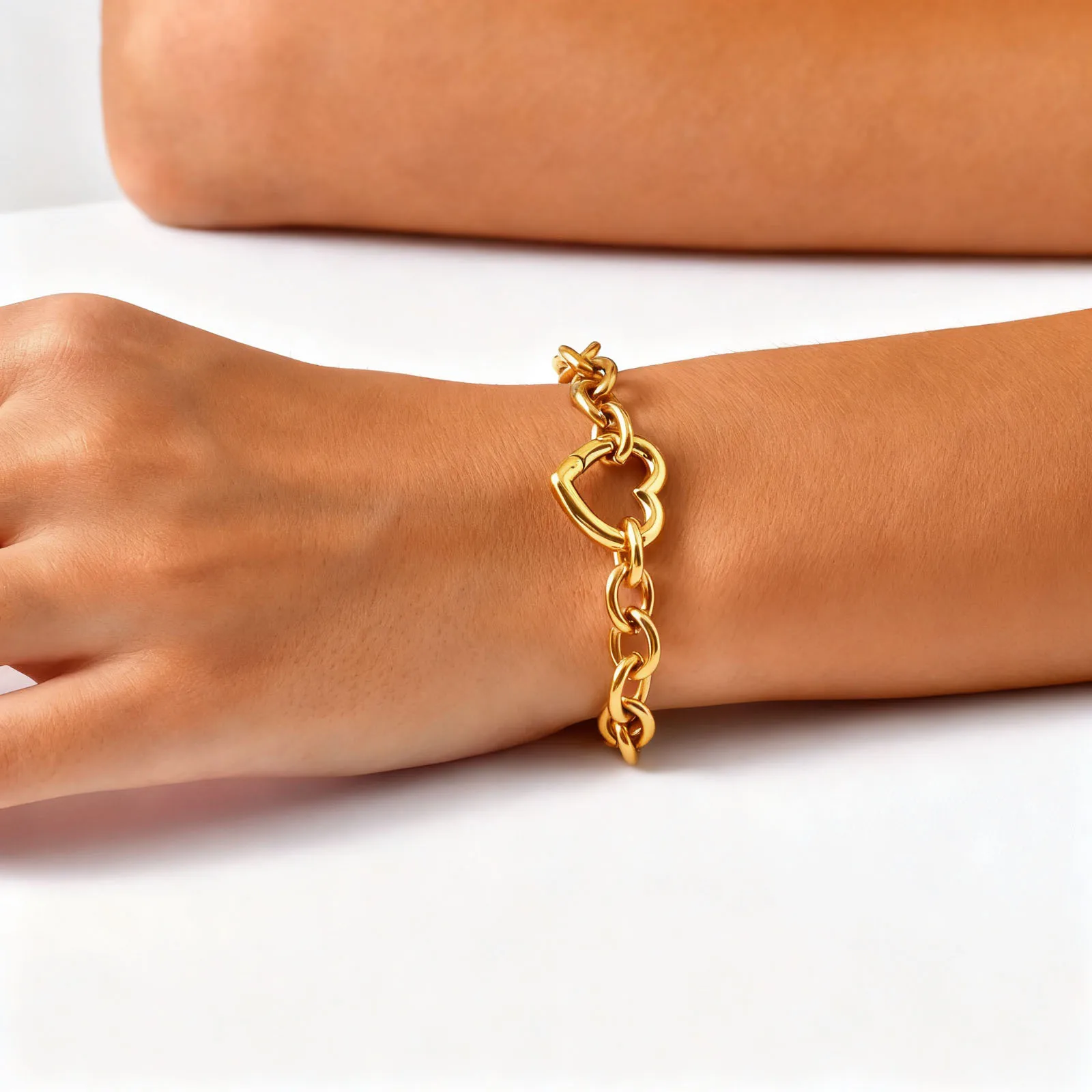 Elevate your accessory collection with the Punk Thick Chain Hollow Heart Charm Bracelet. Crafted from durable gold-colored stainless steel, this chunky bracelet combines edgy design with lasting wearability. Its hollow heart charm adds a distinctive touch, making it perfect for parties or everyday fashion statements. Durable and stylish, it's an expert choice for those seeking a bold yet refined jewelry piece.